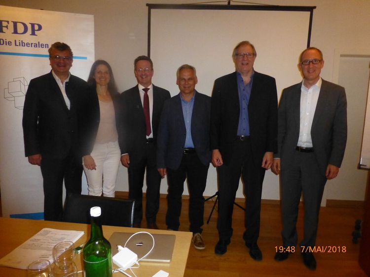 Anschliessend an die statutarische GV wurden die Abstimmungsvorlagen vom 10. Juni vorgestellt und zum Teil kontradiktorisch behandelt. Ständerat Martin Schmid erläuterte die Volksinitiative „Für krisensicheres Geld: Geldschöpfung allein durch die Nationalbank – genannt auch Vollgeld-Initiative. Hier wurde diskussionslos gemäss Antrag von Martin Schmid mit der Schlussbemerkung „NEIN zum Experiment mit unserem Wohlstand“ analog der FDP Schweiz einstimmig die NEIN Parole beschlossen.